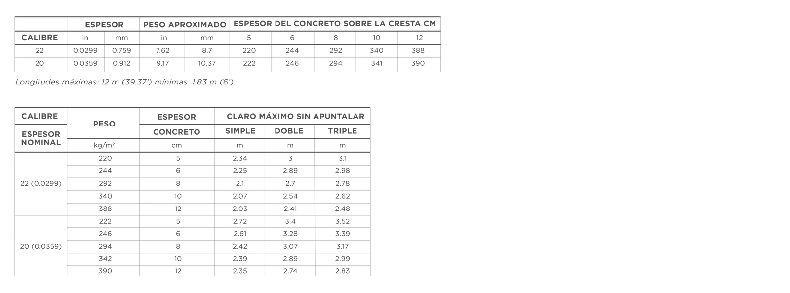 • Calibres 20 y 22.