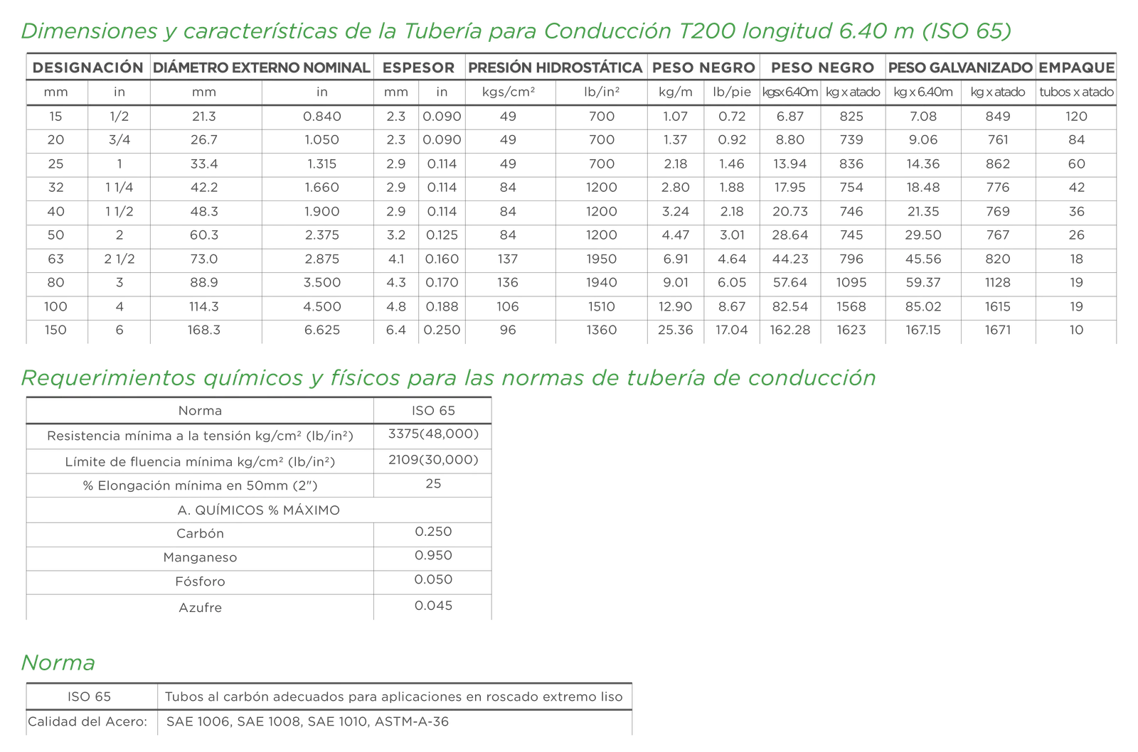 Tubería de acero con soldadura longitudinal para conducción, con espesor más delgado, para agua, vapor, aire y gas. Proceso de fabricación en frío, que cumple con los requerimientos de la Norma ISO 65. Cuenta con alta resistencia a la corrosión y es sometida a diversas pruebas no destructivas, como UT, corrientes Eddy y prueba hidrostática, que aseguran su calidad.